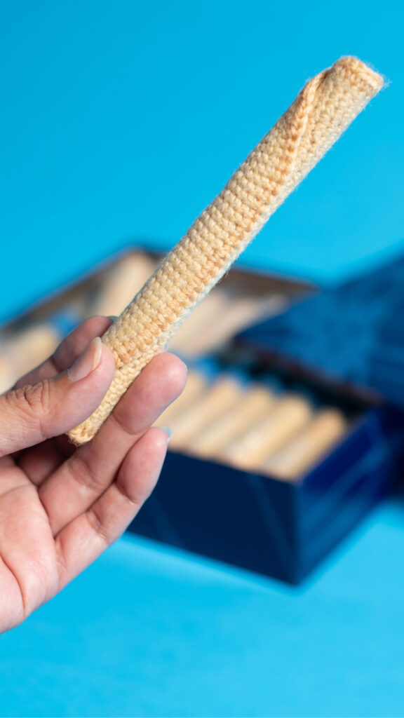 普段の作品とは異なるアプローチですが、ヨックモックのシガールに対する長年のこだわりと美しさを、私なりの方法で表現した作品です。